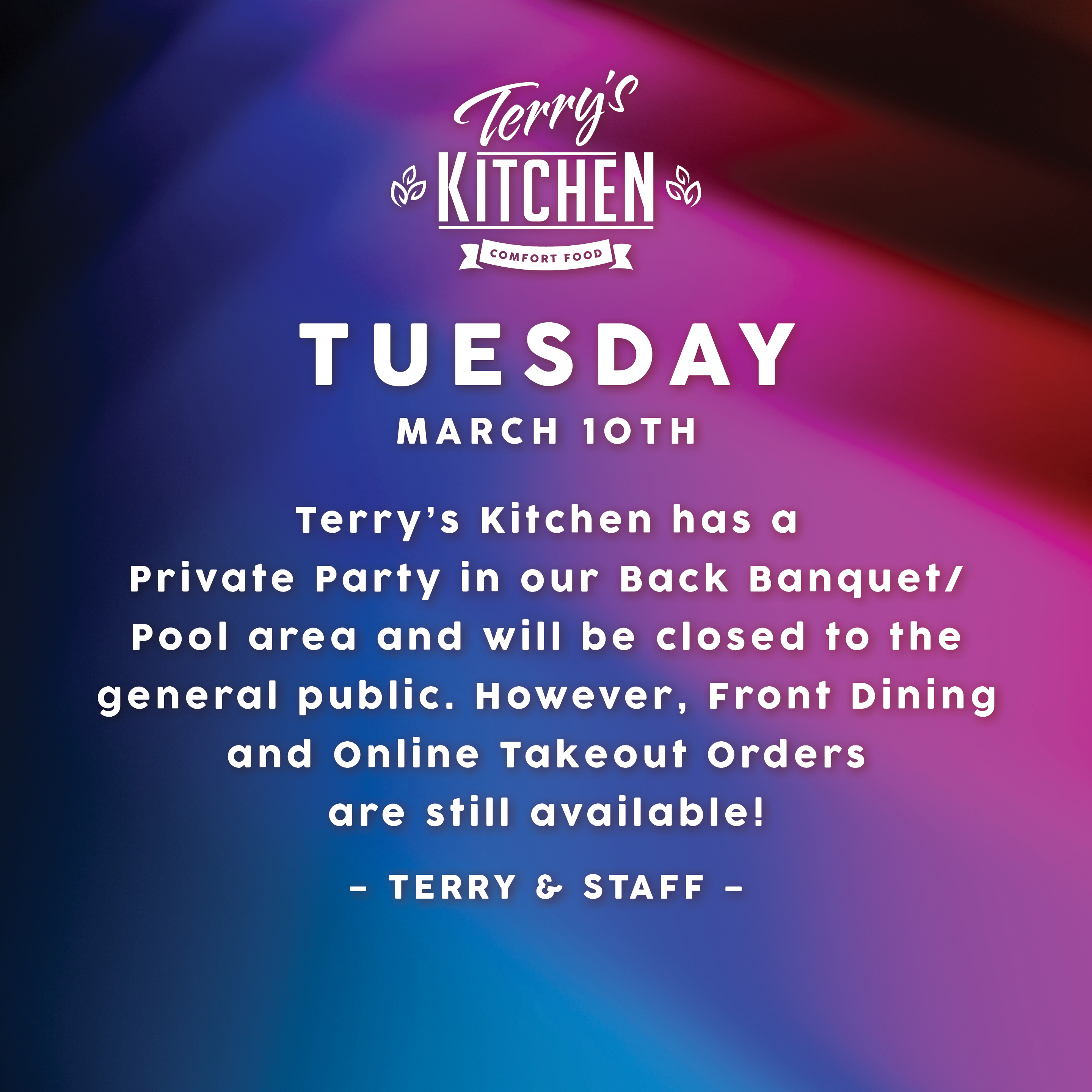 Located in the Heart of Newport Hills, Terry's Kitchen is the Neighborhood Hangout spot.